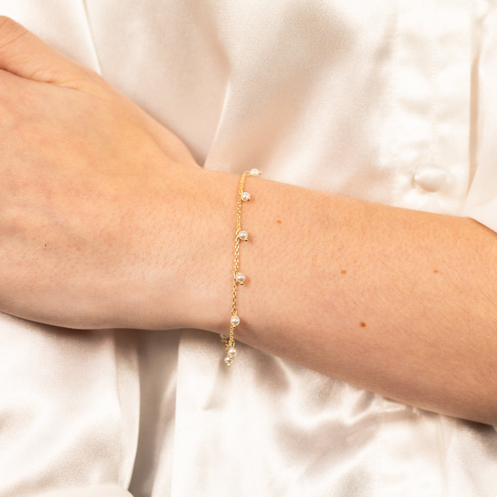 Sterling Silver Gold Plated Simulated Pearl Charm 19cm Bracelet