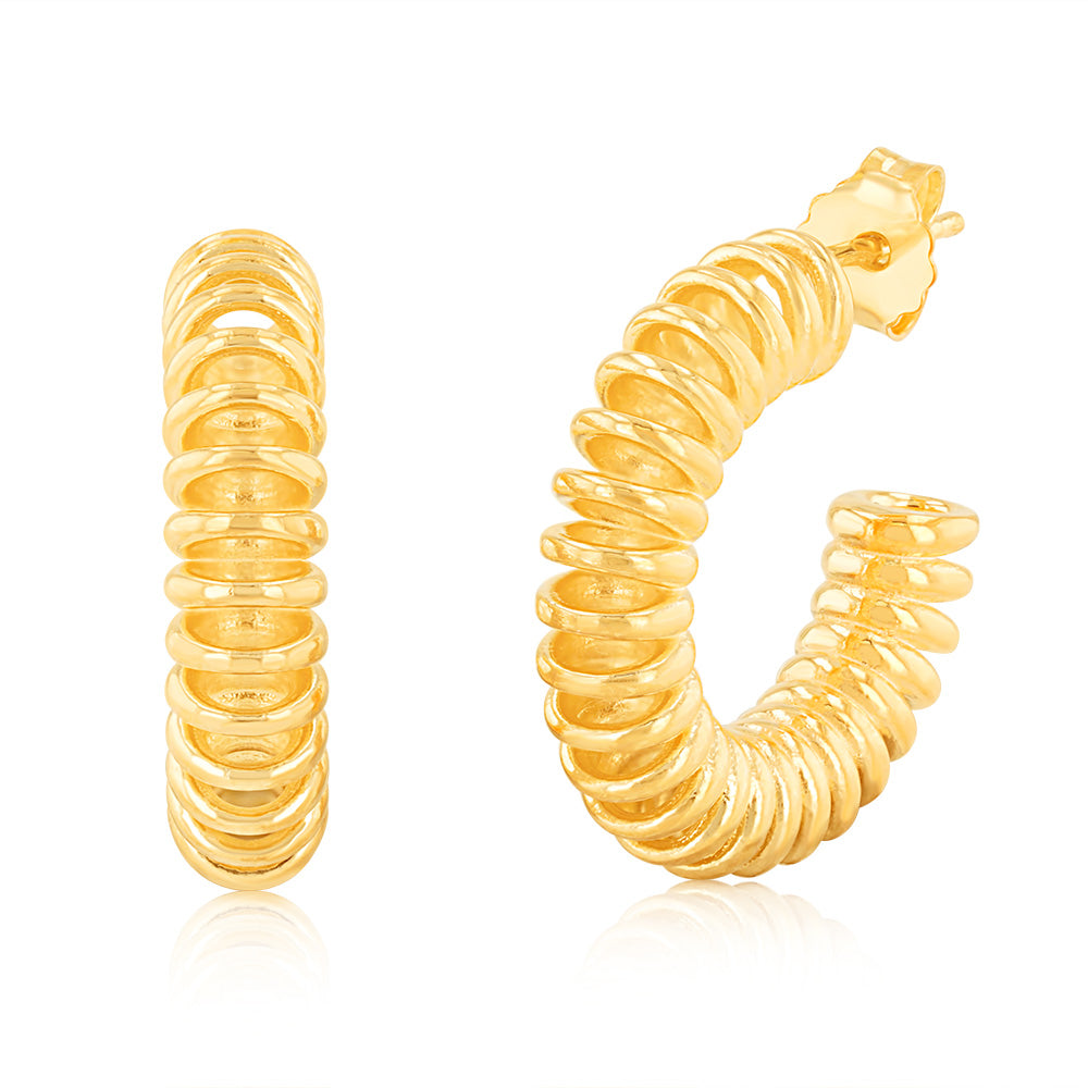 Sterling Silver Gold Plated Spring Style 3/4th Hoop Earrings
