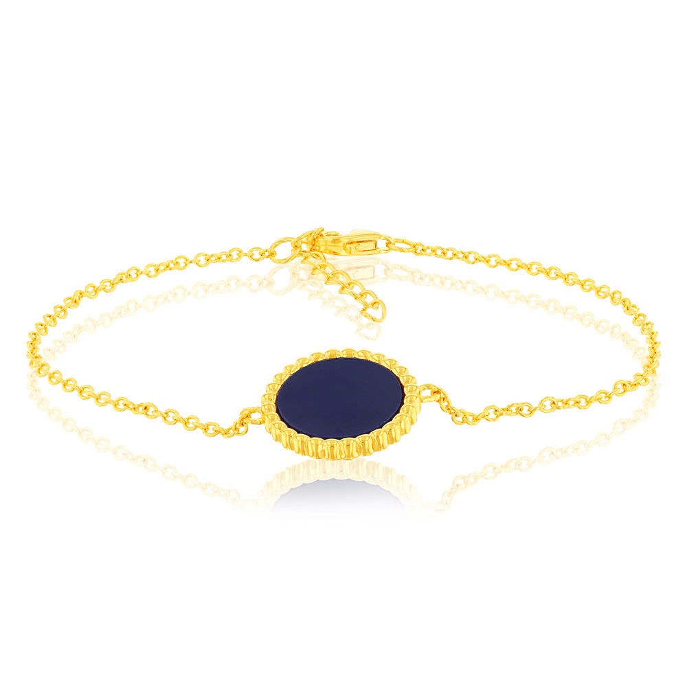 Sterling Silver Gold Plated Synthetic Lapis Charm 16+3cm Bracelet
