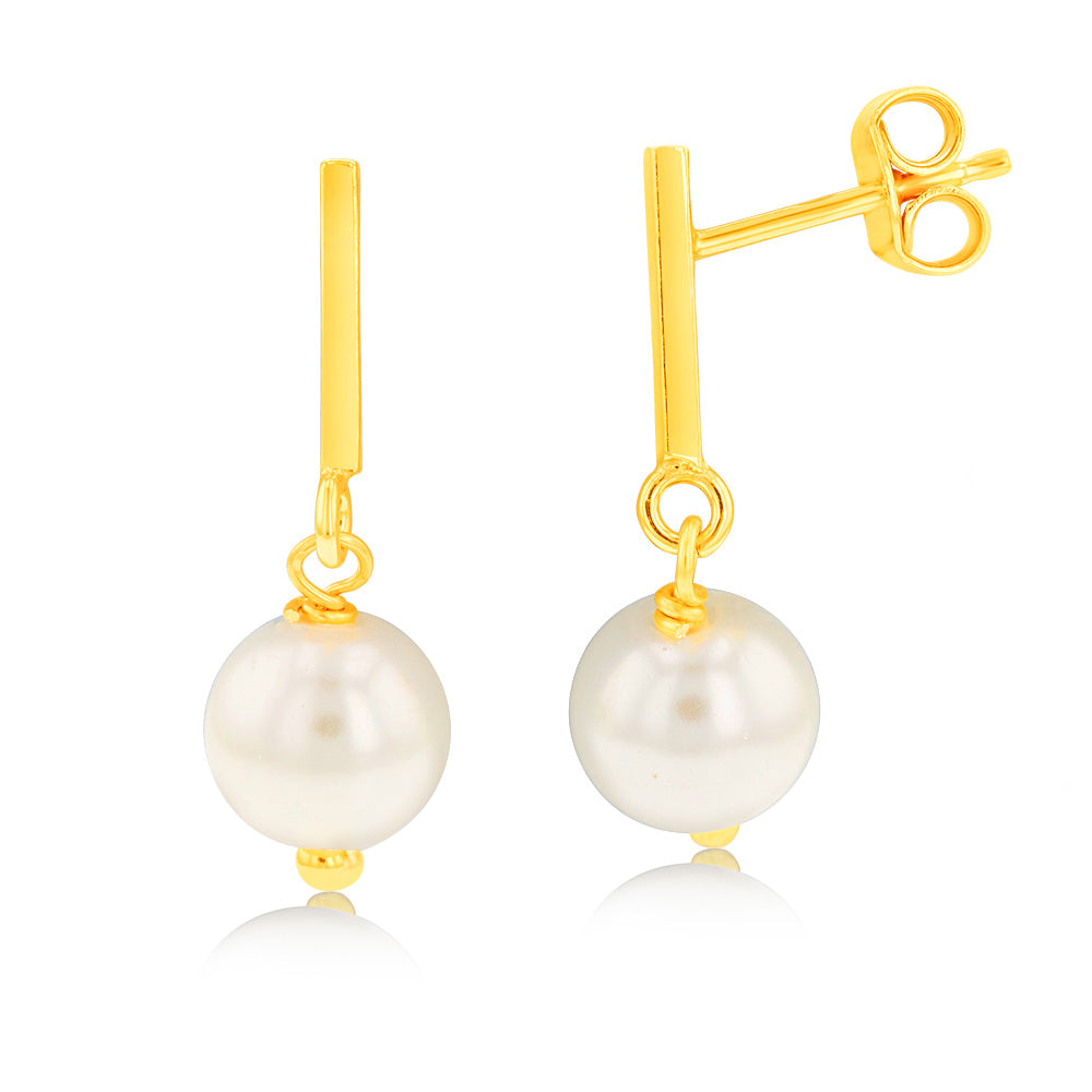 Sterling Silver Gold Plated Synthetic Pearl Drop Stud Earrings