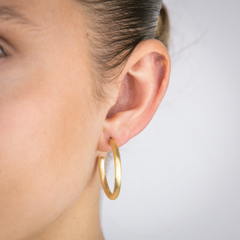 Sterling Silver Gold Plated Textured 25mm 3/4th Hoop Earrings