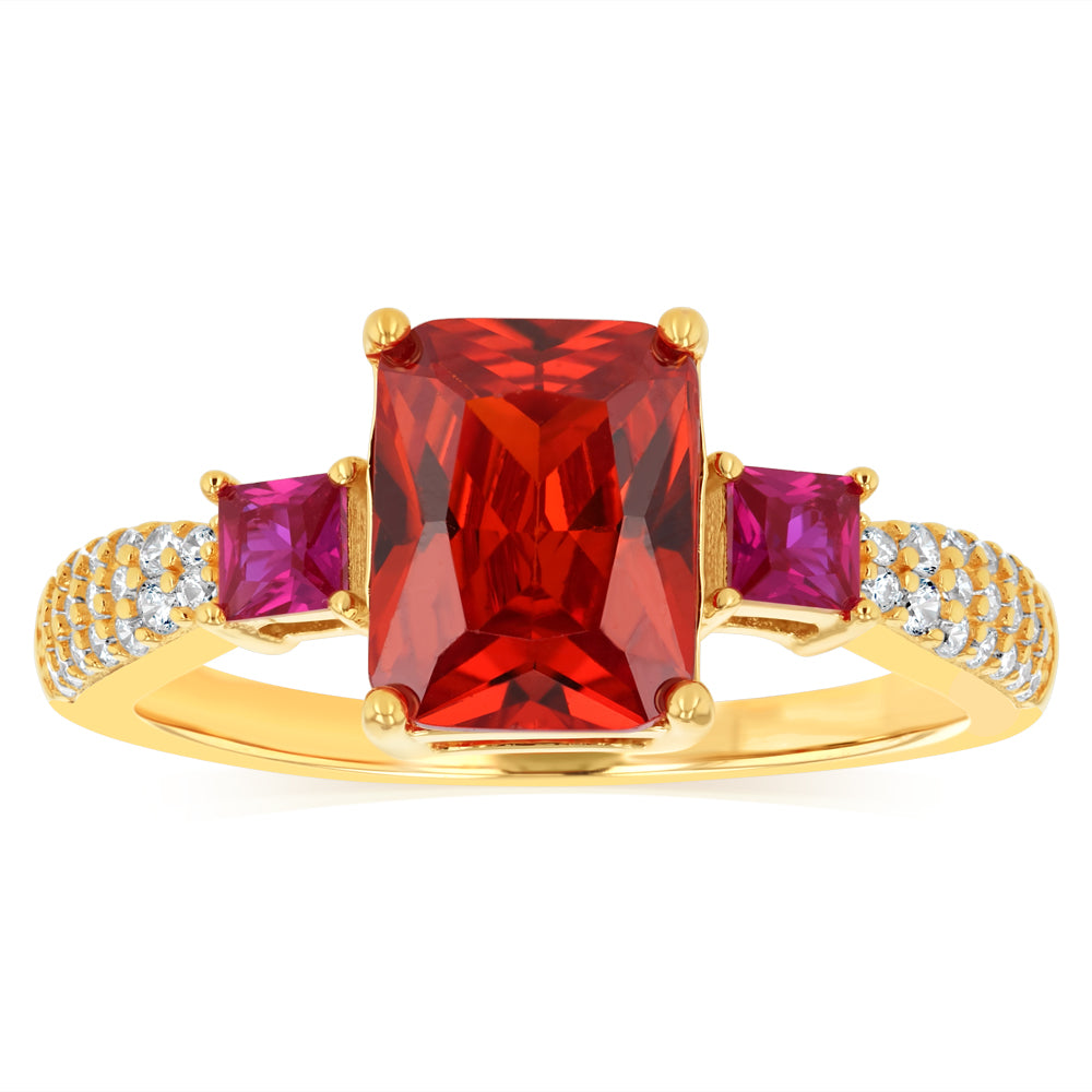 Sterling Silver Gold Plated White Red and Orange Cubic Zirconia Ring