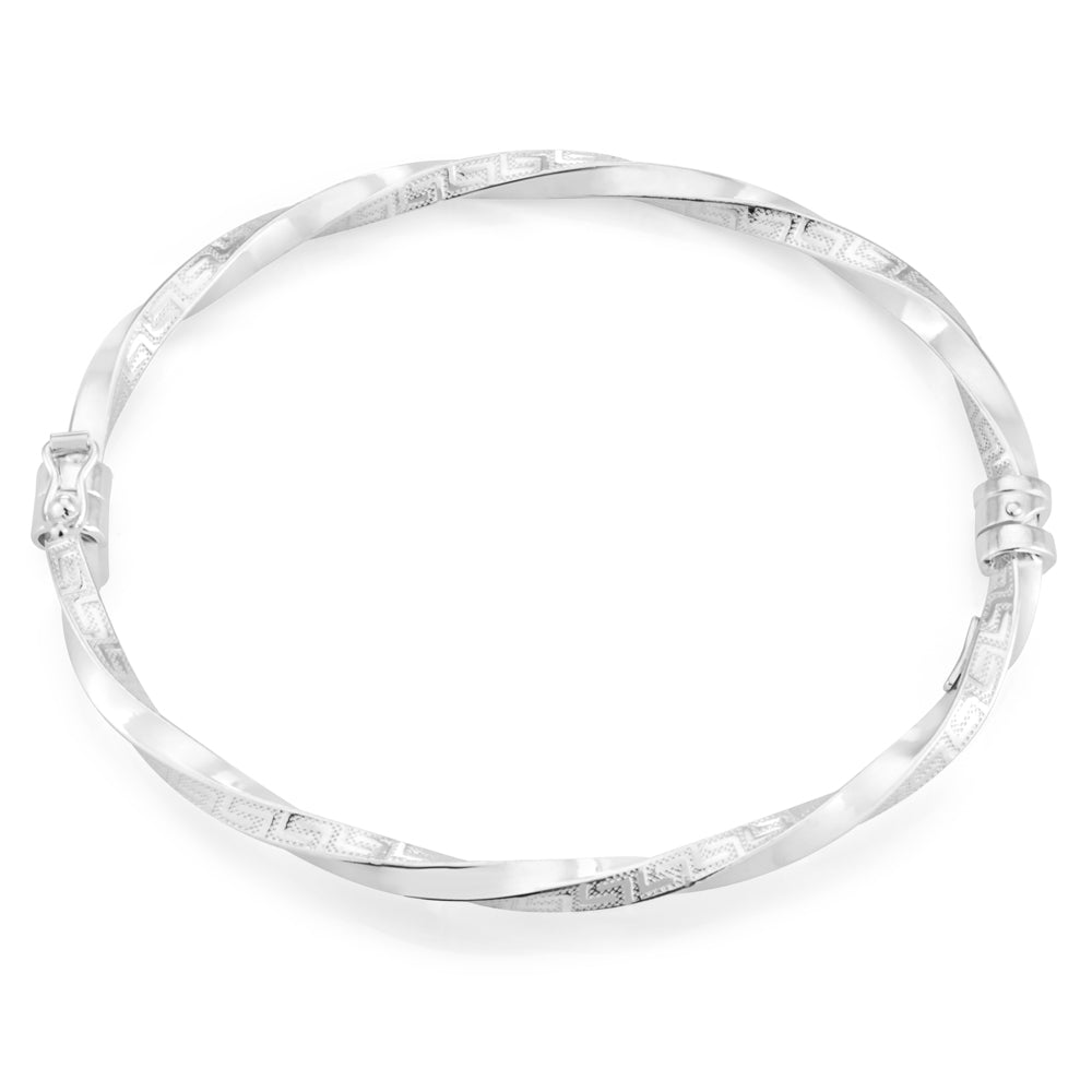 Step out in style with this Sterling Silver Greek key oval hinged bangle; comfortable and sophisticated.