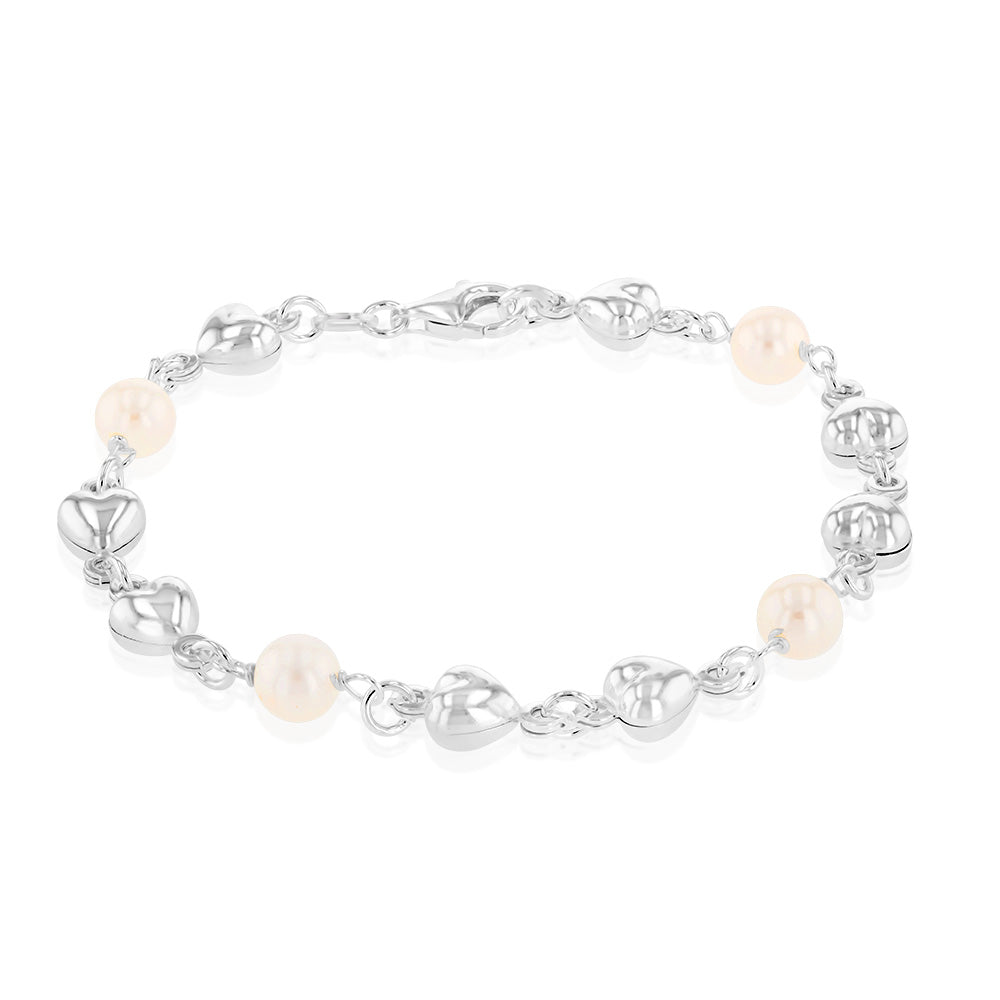 Sterling Silver Heart And Bead Charm 19cm Bracelet