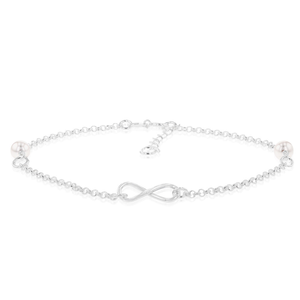 Sterling Silver Infinity And White Bead On 27cm Anklet