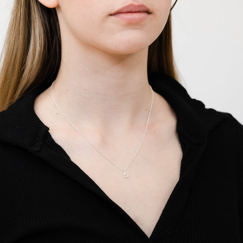 Sterling Silver Initial Letter "S" Pendant on 45cm Chain