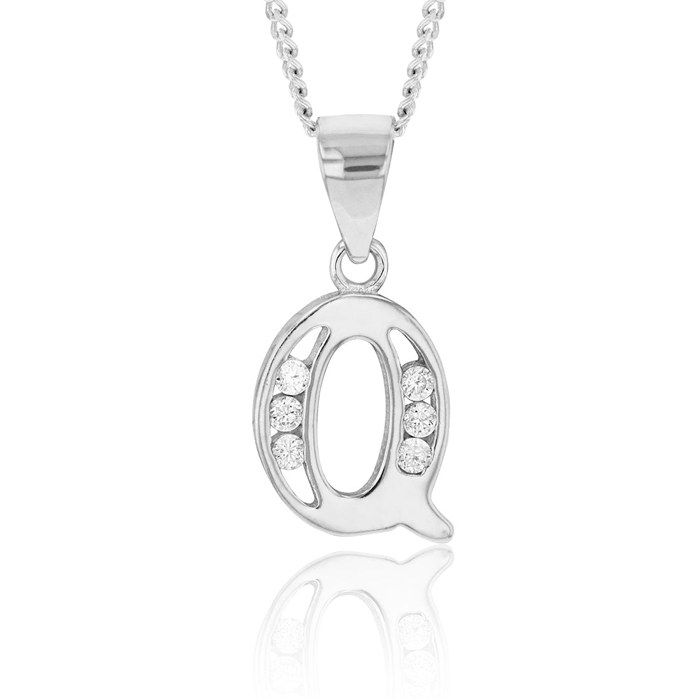 Sterling Silver Initial Zirconia Initial "Q" Pendant