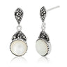 Sterling Silver Marcasite + Oxidised Pearl Earrings