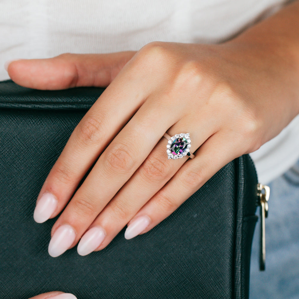 Sterling Silver Mystic Topaz & 14Cubic Zirconia Ring