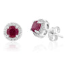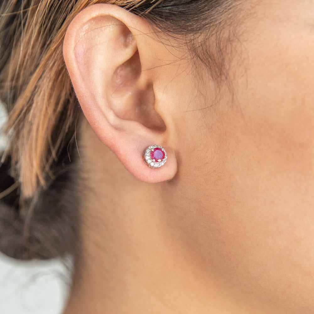Sterling Silver Natural Enhanced Ruby and White Zircon Stud Earrings