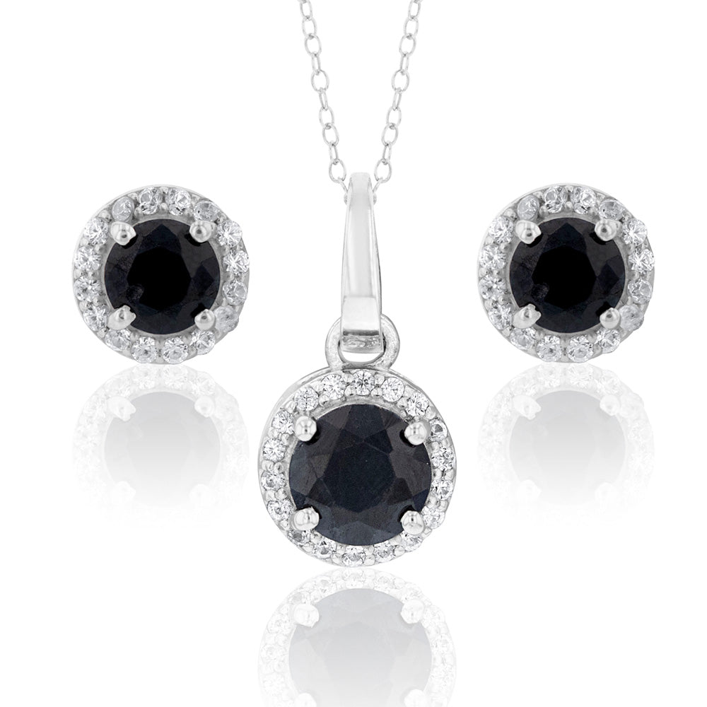 Sterling Silver Natural Enhanced Sapphire and White Zircon Set on Chain