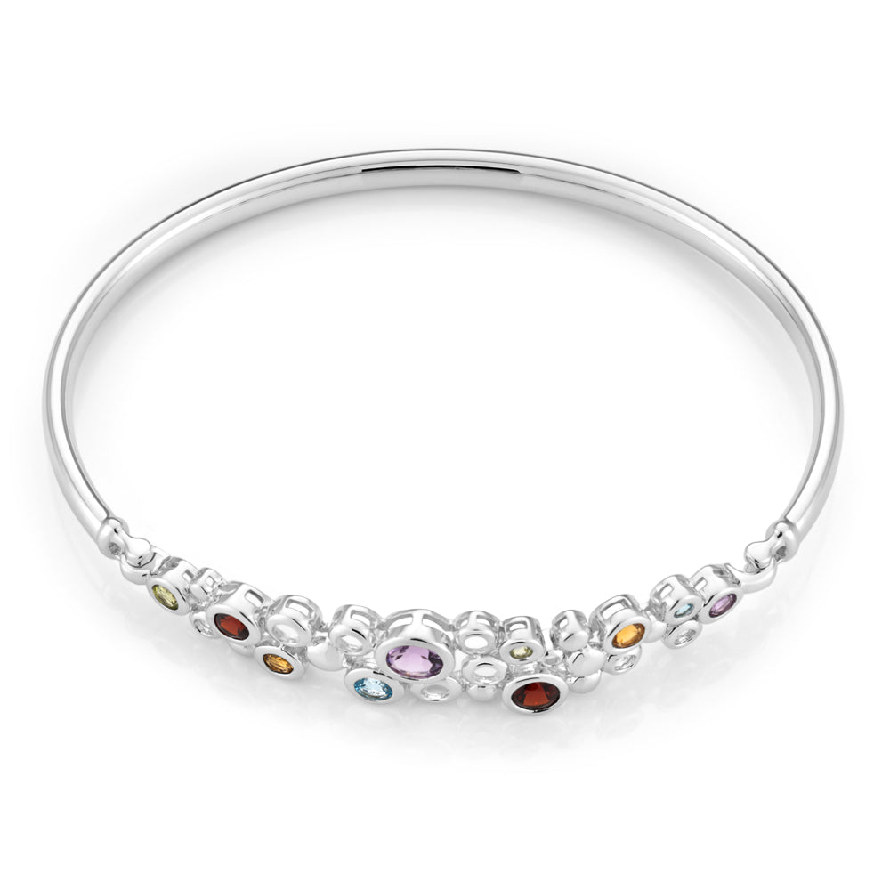 Sterling Silver Natural Mixed Gemstone Bangle 65mm Diameter