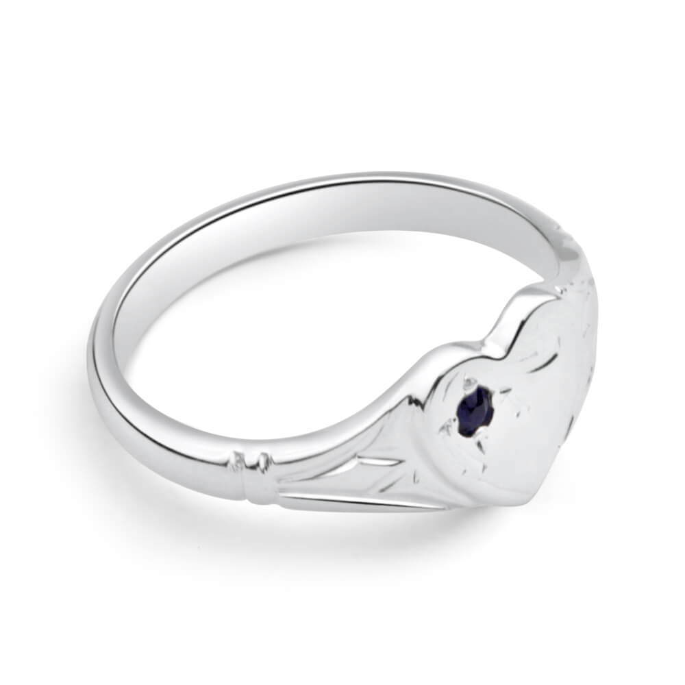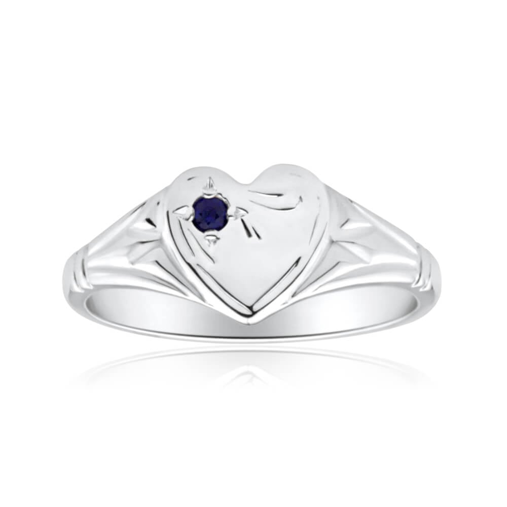 Sterling Silver Natural Sapphire Signet Heart Ring Size H