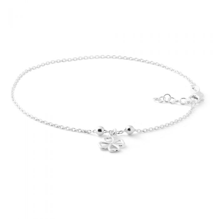 This anklet is simply endearing. The clove leaf made in sterling silver looks adorable and definitely steals your heart! Features: This gorgeous anklet is fashioned with sterling silver. • This sterling silver link bracelet has a four-leafed clover at the centre that makes a confident and bold statement