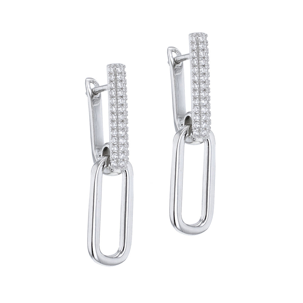 Sterling Silver Pave Link Cubic Zirconia Drop Earrings