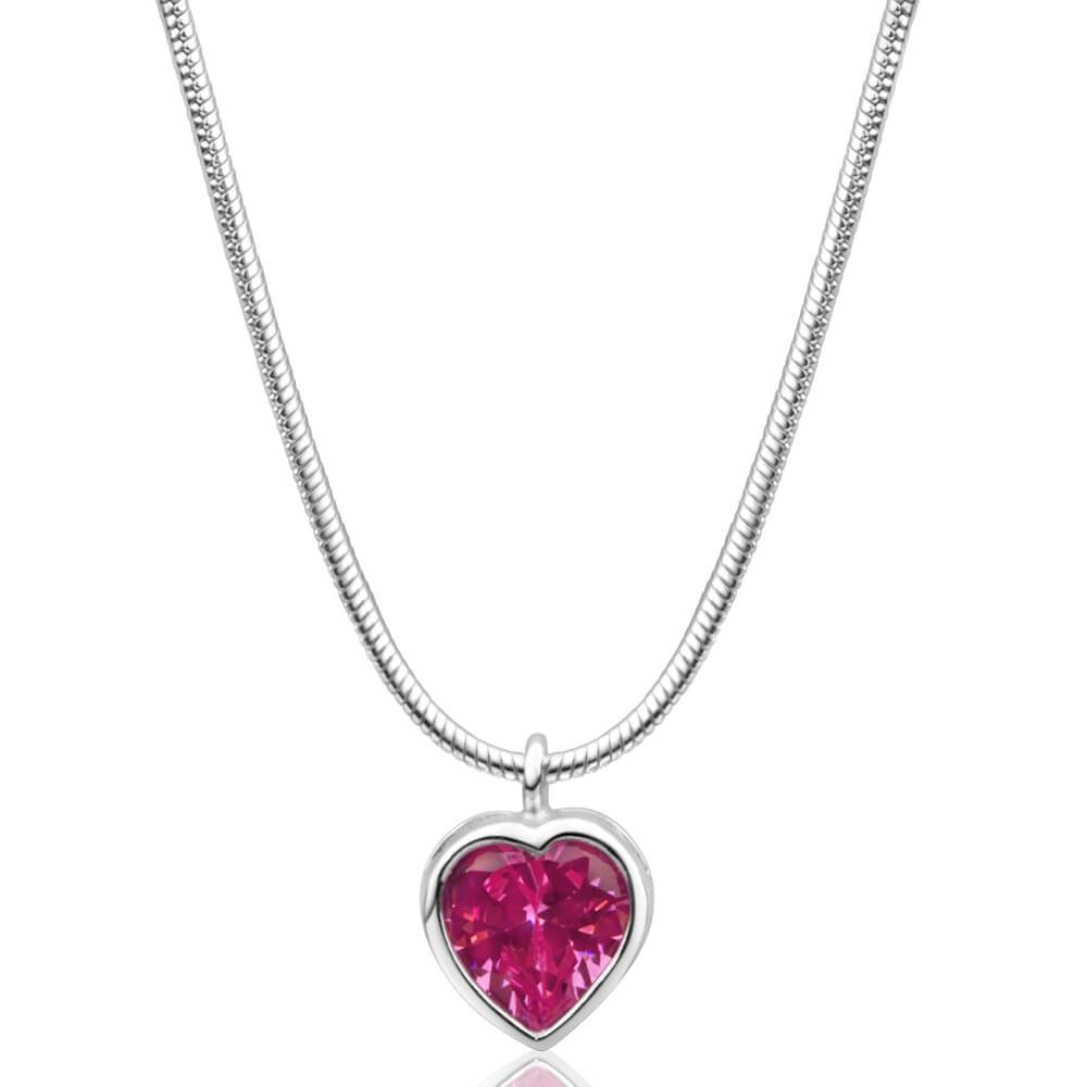 Sterling Silver Pink Cubic Zirconia Heart Pendant With 40cm Snake Chain