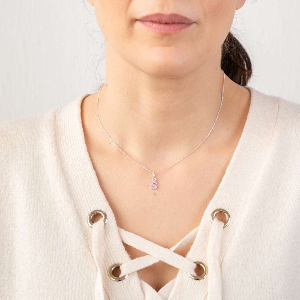 Sterling Silver Pink Enamel Initial "S" Pendant