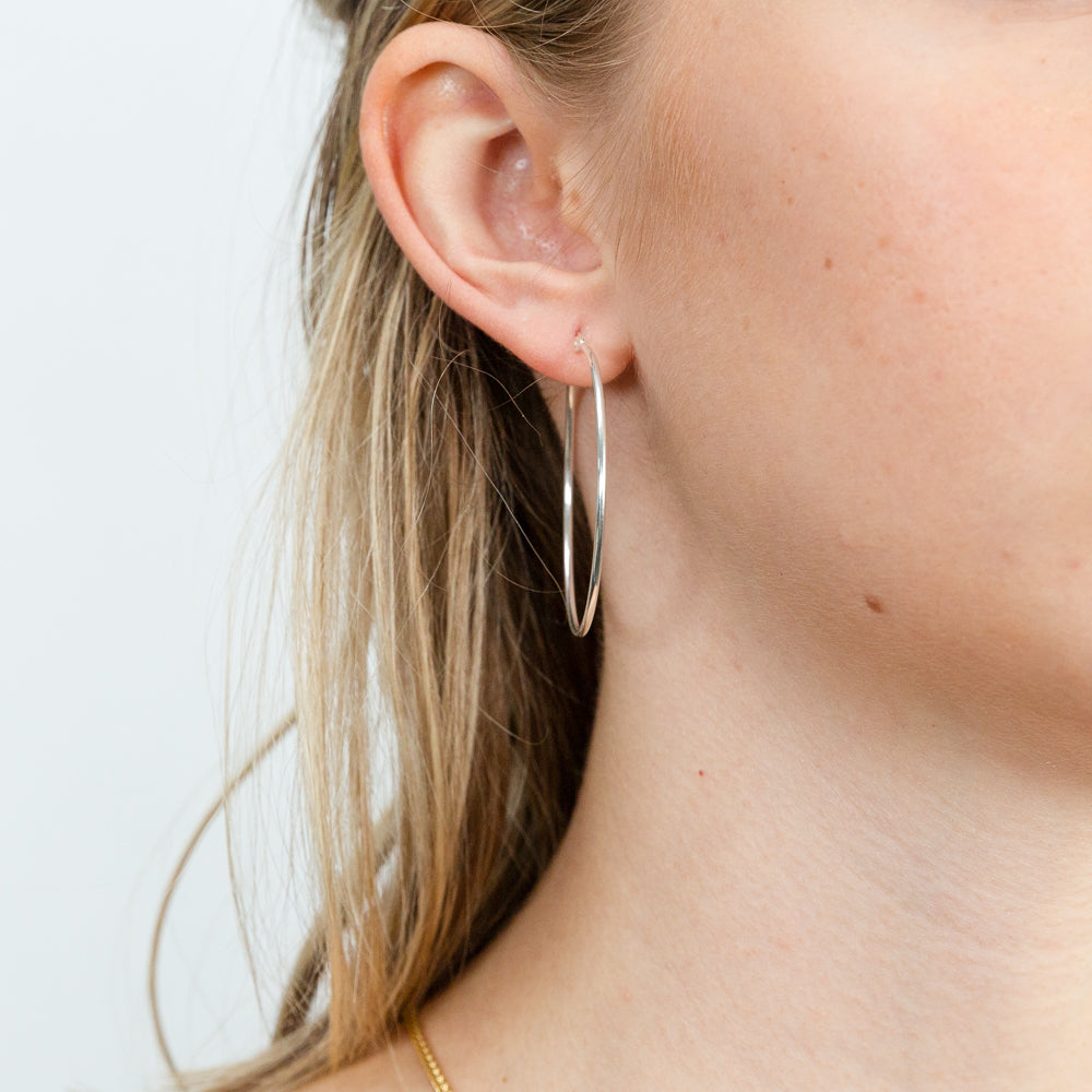 These classic 40mm hoop earrings have been crafted from premium sterling silver and offer a style that will never go out of fashion. This will instantly become a daily staple and are perfect for casual and formal wear.