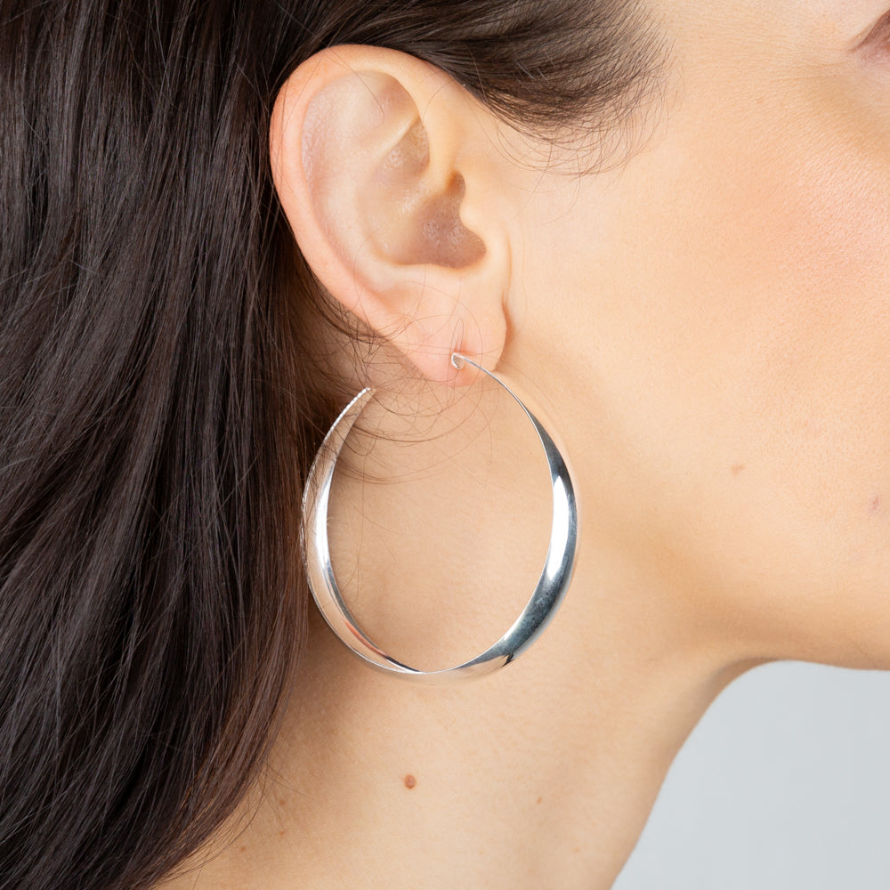 Sterling Silver Plain Broad 3/4 Hoop Earrings