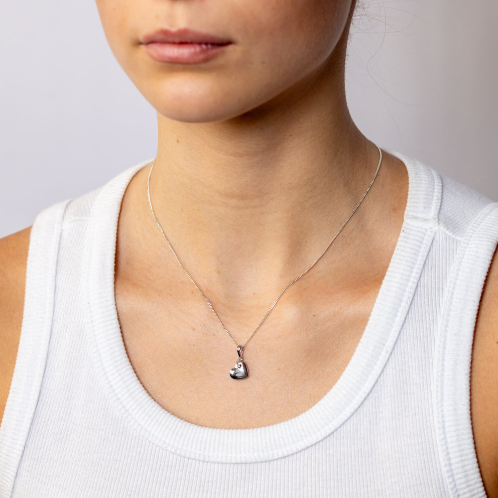 Sterling Silver Polished Heart Pendant with Rose Gold Accent