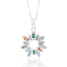 Sterling Silver Rainbow Multicolour Cubic Zirconia Flower Pendant