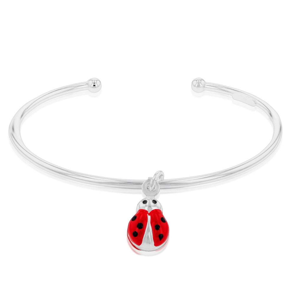 Sterling Silver Red Enamel Ladybug Torq Open Baby Bangle