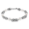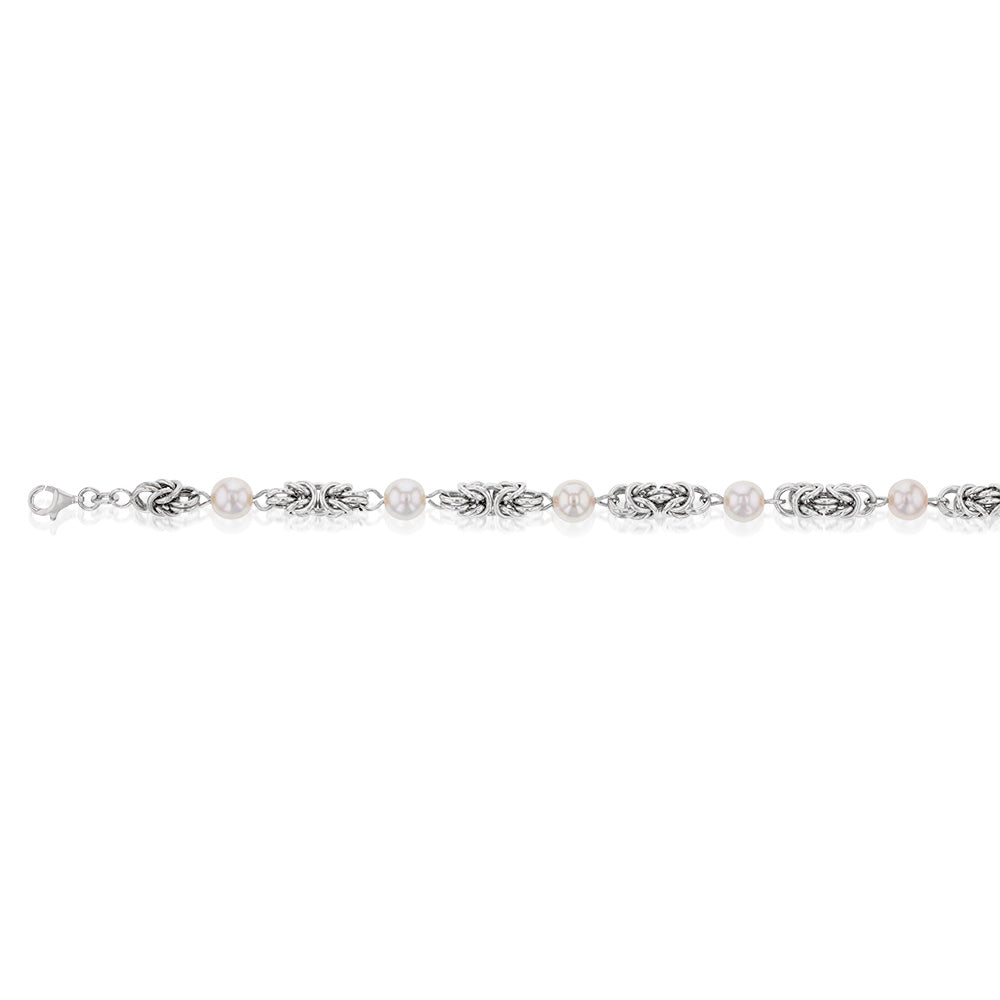 Sterling Silver Rhodium Finish Pearl And Silver Mesh 19cm Bracelet