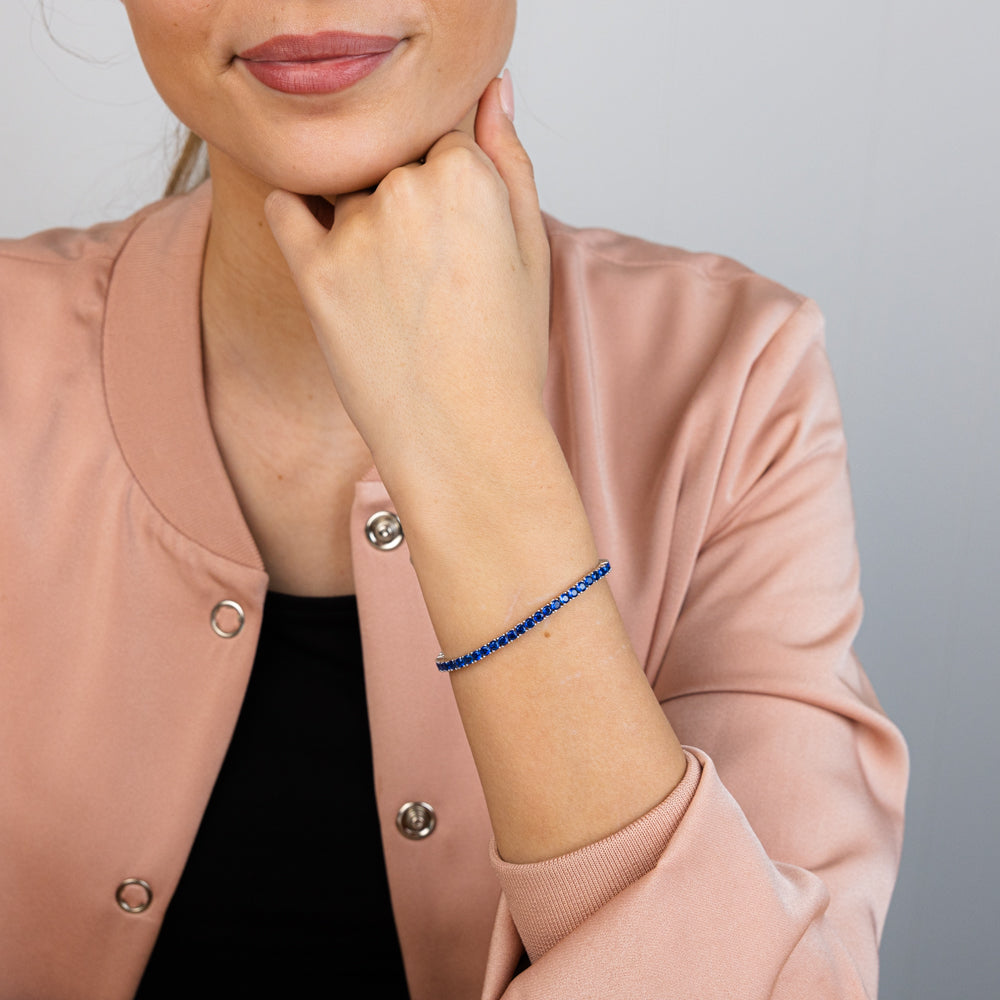 Sterling Silver Rhodium Plated 3mm Sapphire Blue Cubic Zirconia 19cm Bracelet