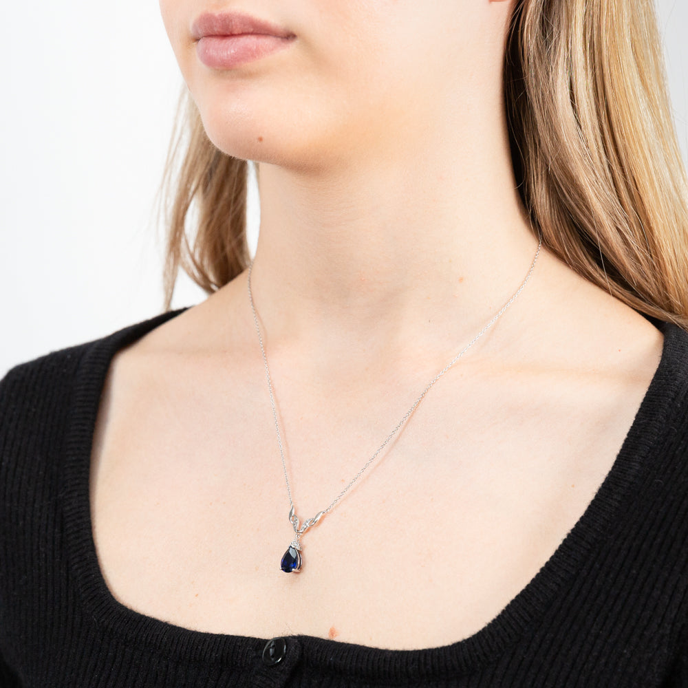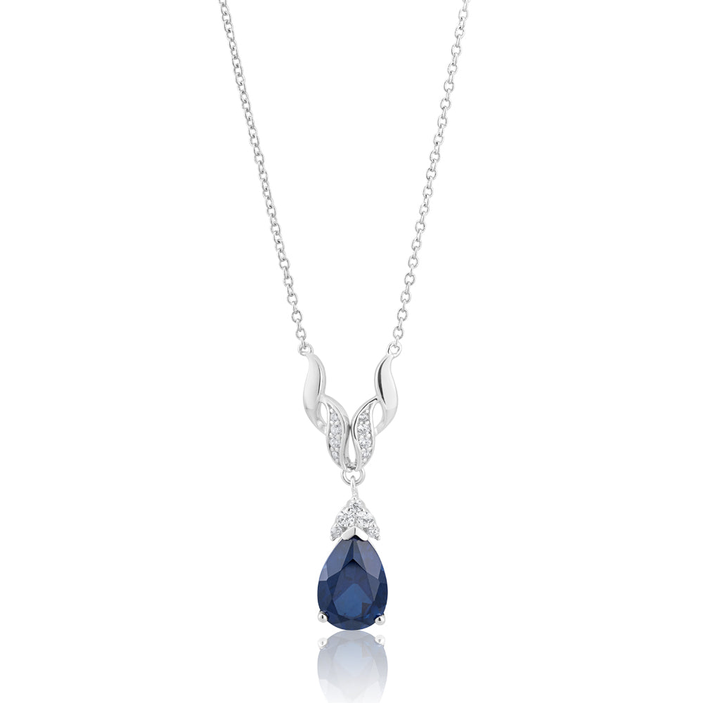 Sterling Silver Rhodium Plated Created Sapphire & Zirconia Necklet 42+3cm