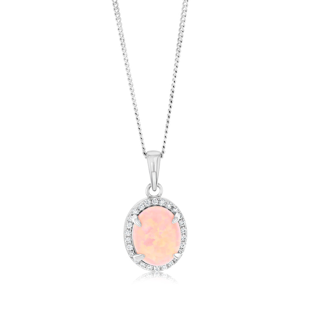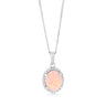 Sterling Silver Rhodium Plated Cubic Zirconia Created Pink Opal Oval Pendant