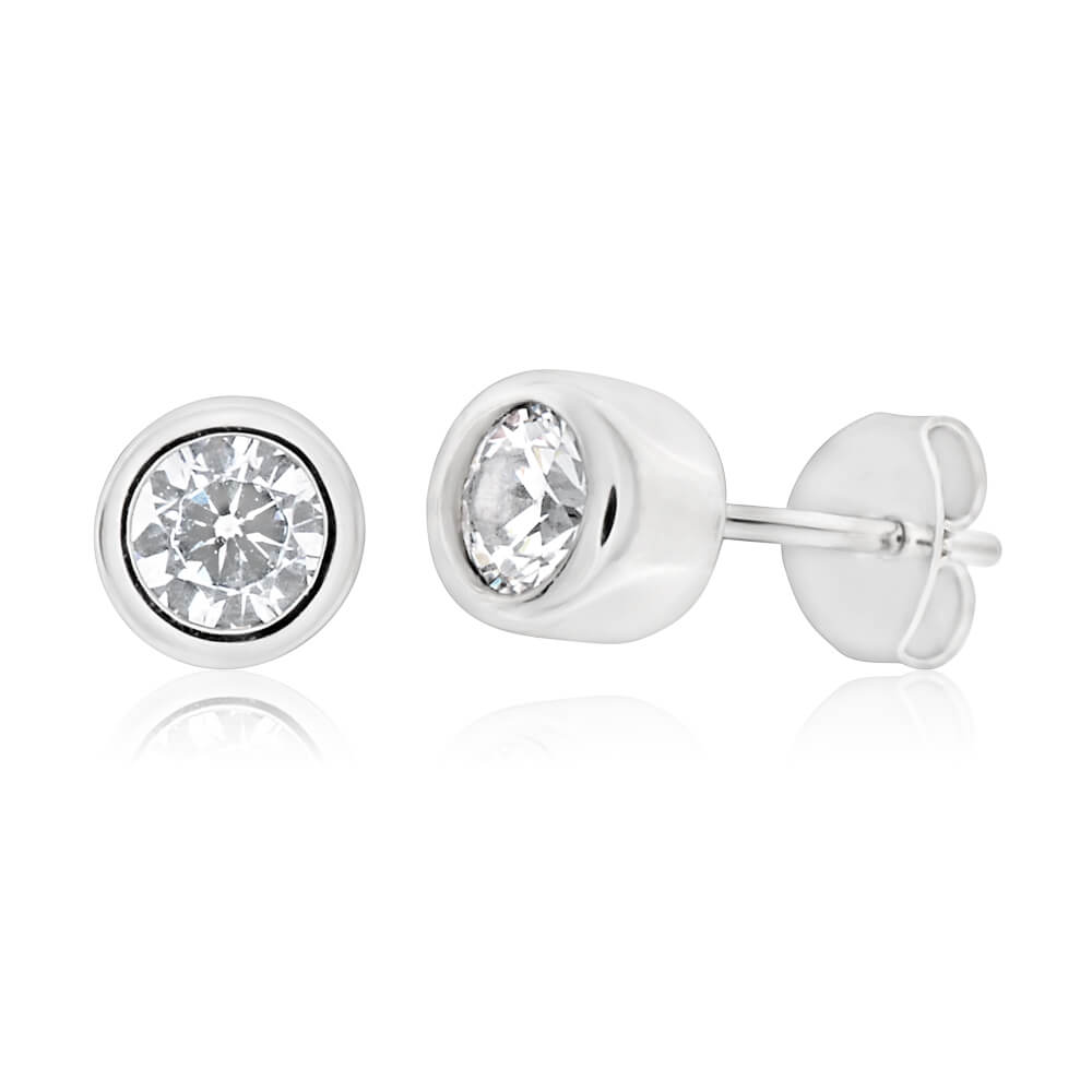 Sterling Silver Rhodium Plated Cubic Zirconia Cylinder Stud Earrings