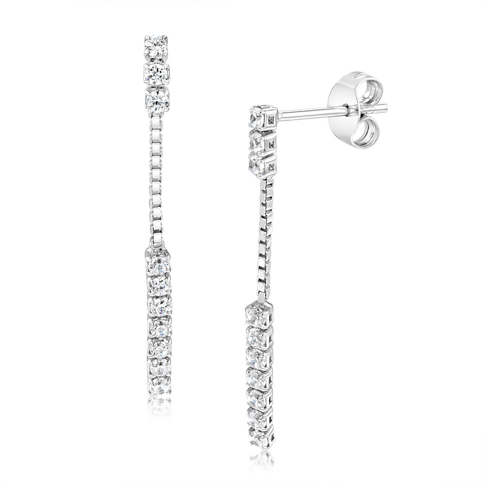 Sterling Silver Rhodium Plated Cubic Zirconia Drop Earrings