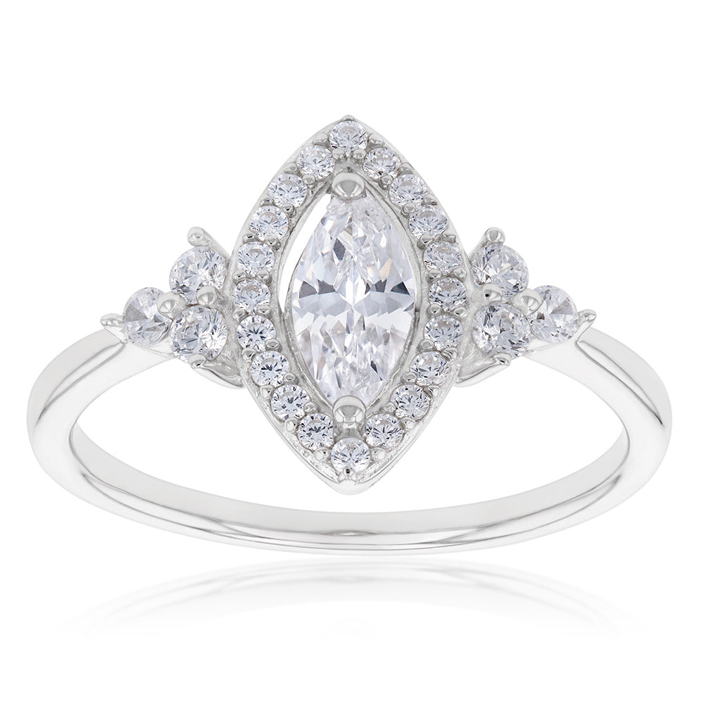 Sterling Silver Rhodium Plated Cubic Zirconia Marquise Ring