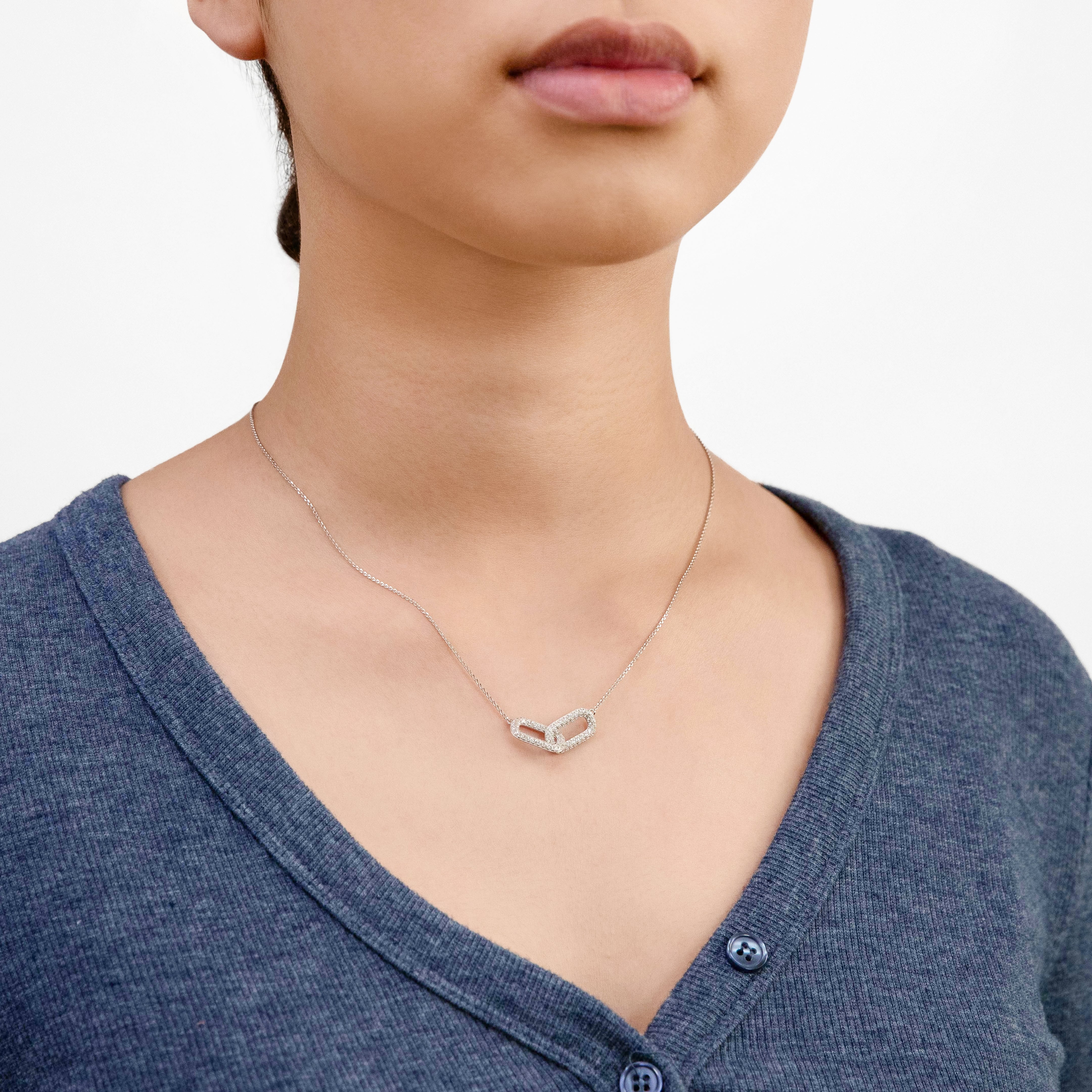Sterling Silver Rhodium Plated Cubic Zirconia On Interconnecting Links 40+5cm Chain