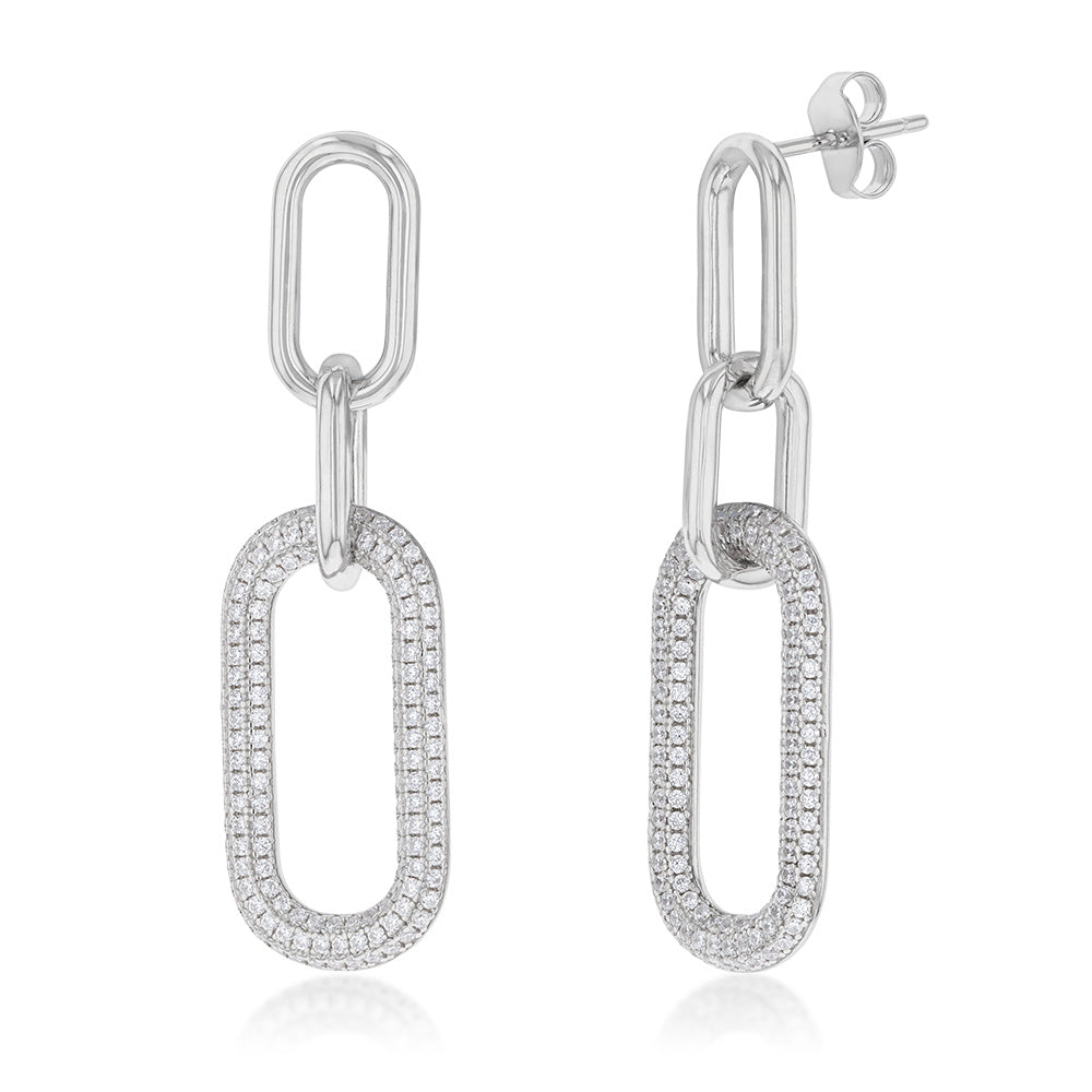 Sterling Silver Rhodium Plated Cubic Zirconia On Links Drop Earrings