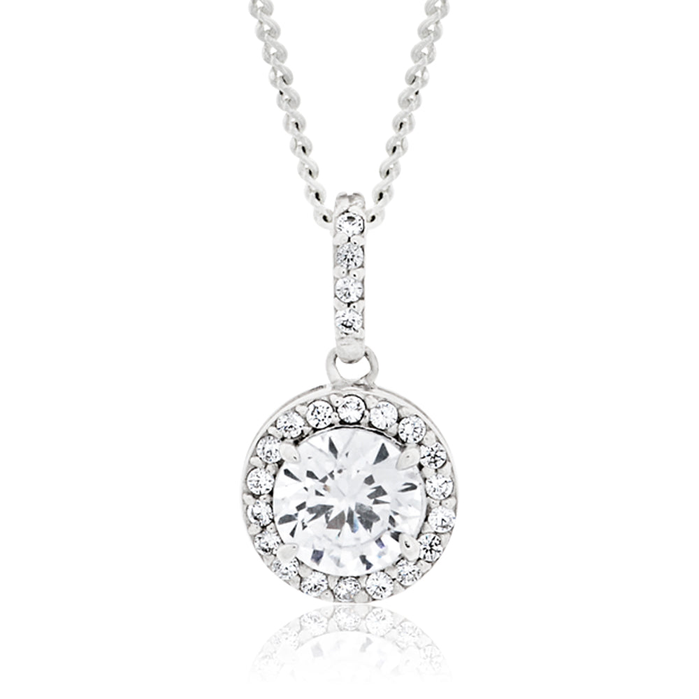 Sterling Silver Rhodium Plated Cubic Zirconia Round Pendant