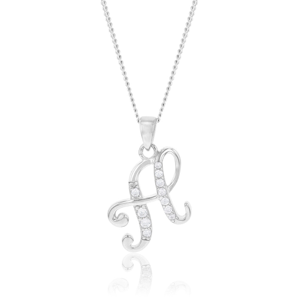 Sterling Silver Rhodium Plated Cubic Zirconia Script "H " Initial Pendant