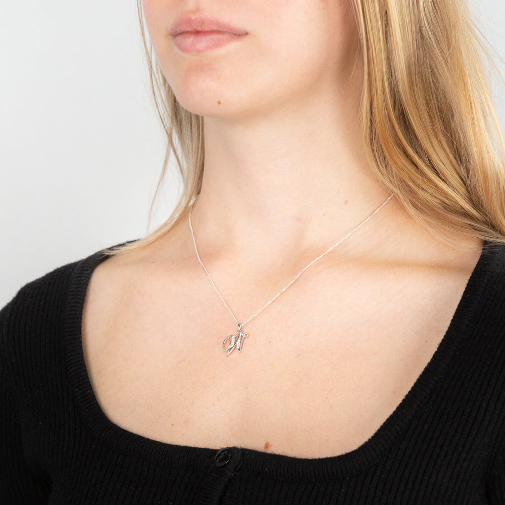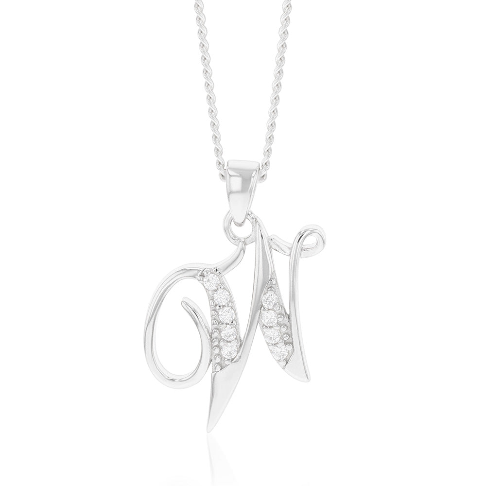 Sterling Silver Rhodium Plated Cubic Zirconia Script "W " Initial Pendant