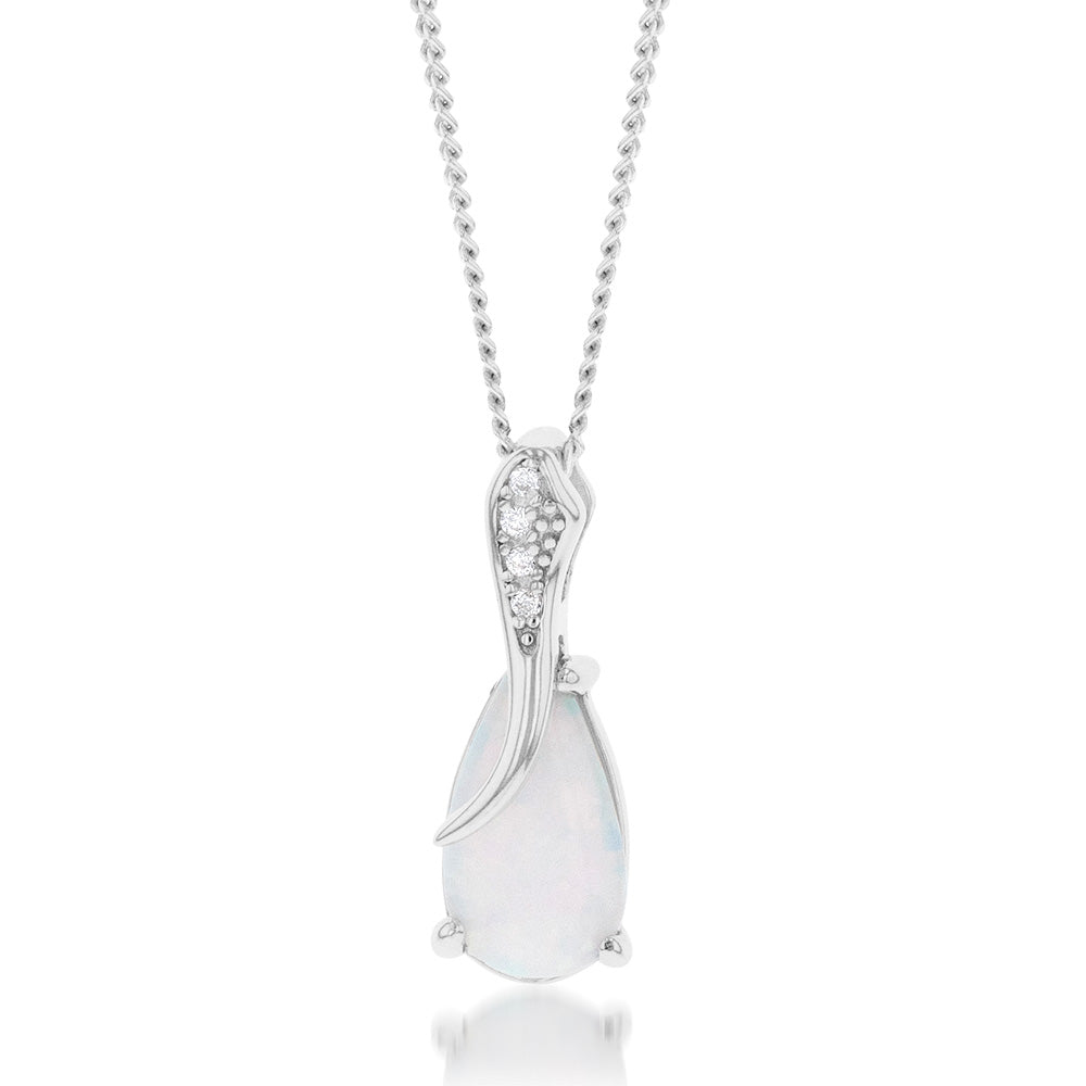 Sterling Silver Rhodium Plated Cubic Zirconia Synthetic Opal Crossover Pendant