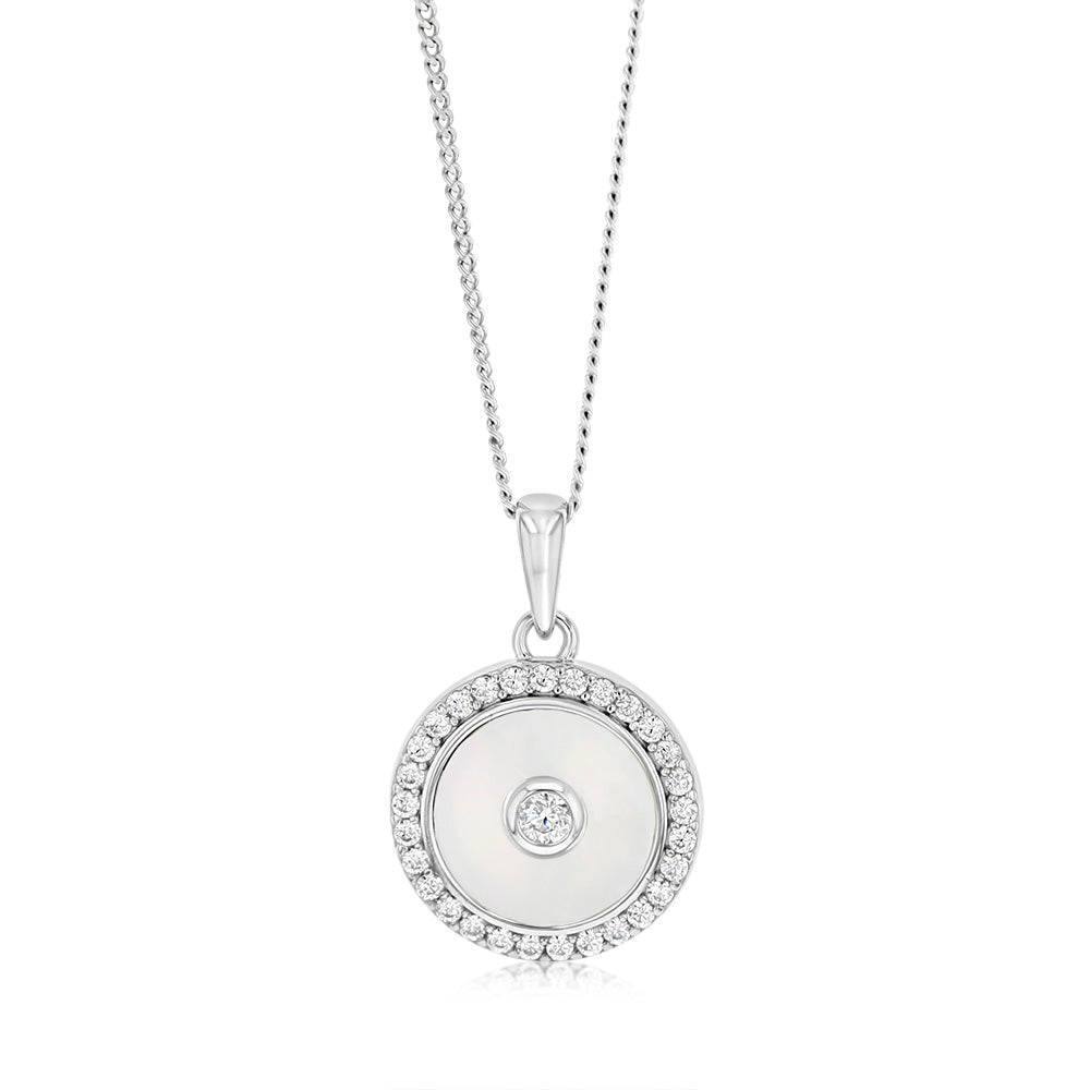 Sterling Silver Rhodium Plated Cubic Zirconia White Shell Pearl Round Pendant