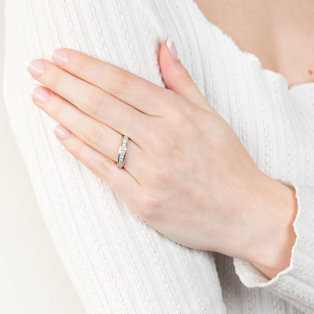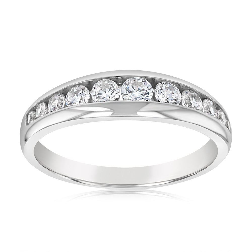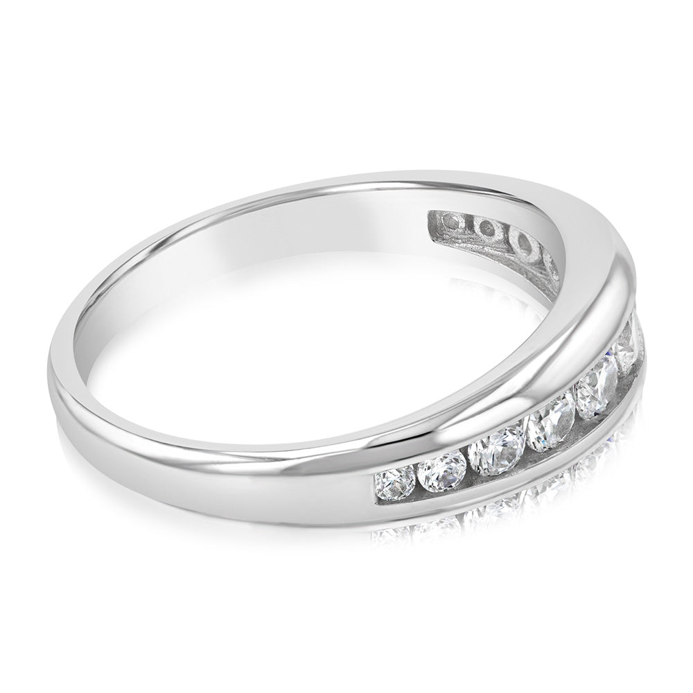 Sterling Silver Rhodium Plated Curbic Zirconia Channel Ring