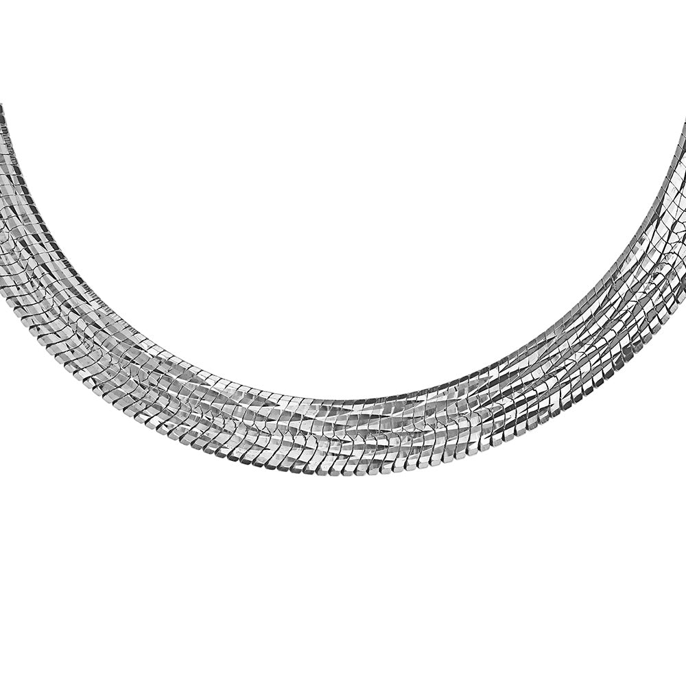 Sterling Silver Rhodium Plated Diamond Cut Strata Hbone 43cm Chain