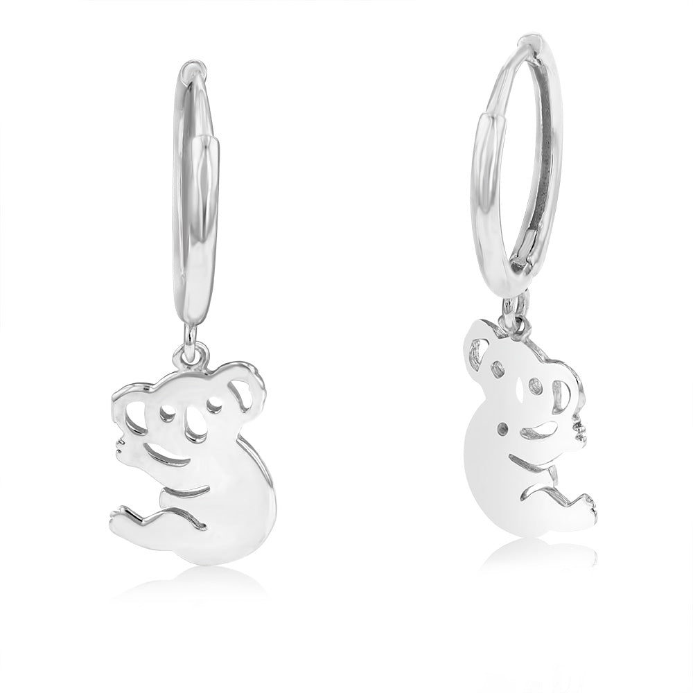 Sterling Silver Rhodium Plated Koala Hoop Earrings