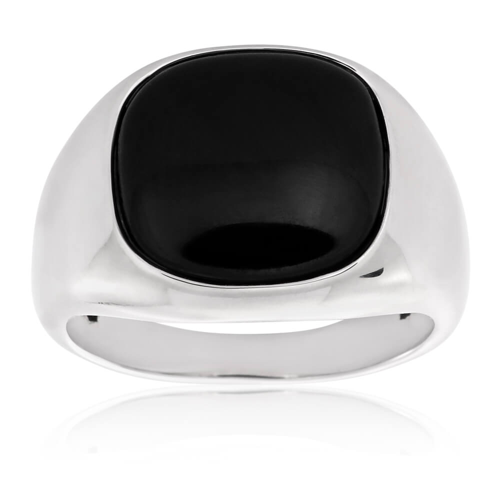 Sterling Silver Rhodium Plated Onyx Gents Ring