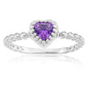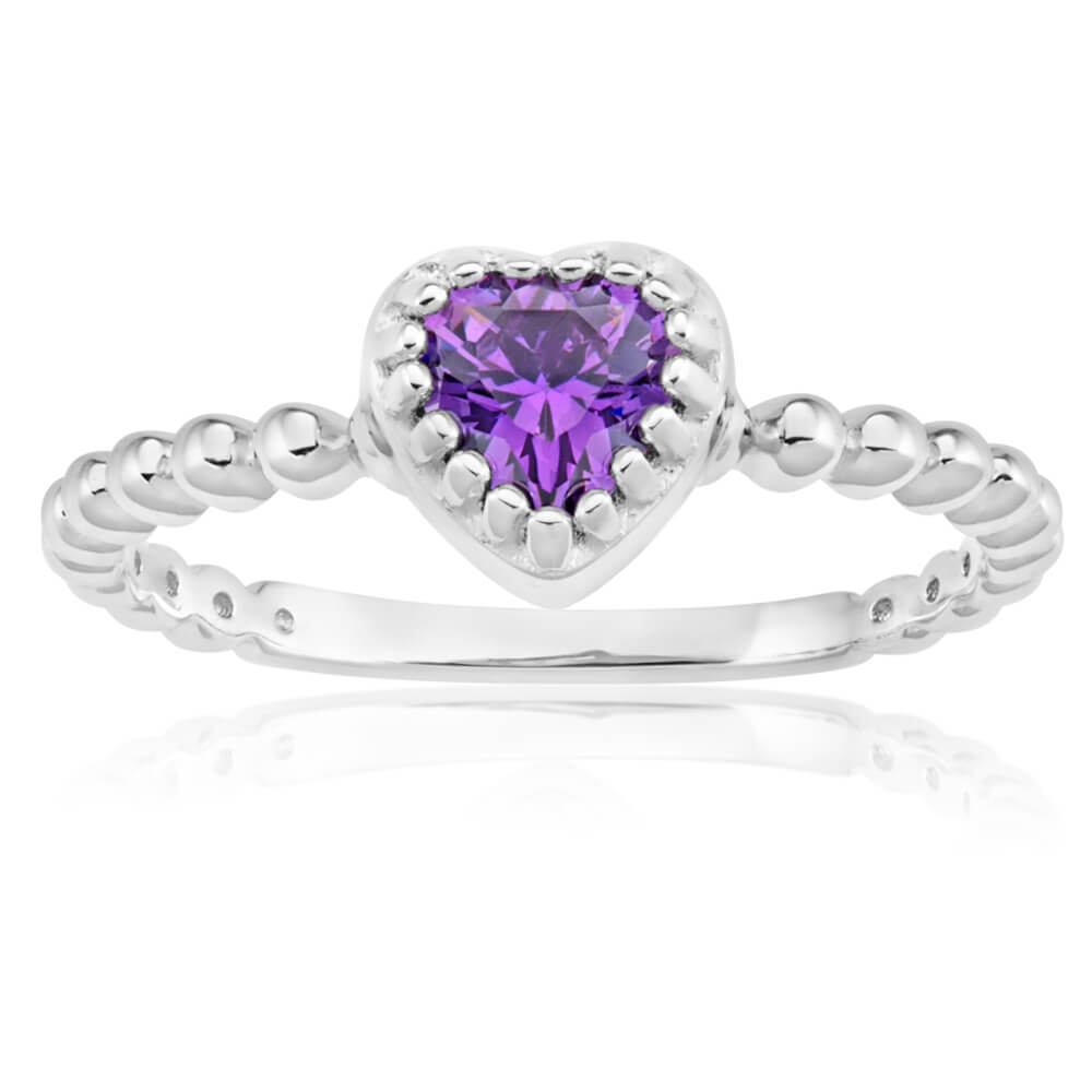 Sterling Silver Rhodium Plated Purple Cubic Zirconia Heart Twisted Band Ring