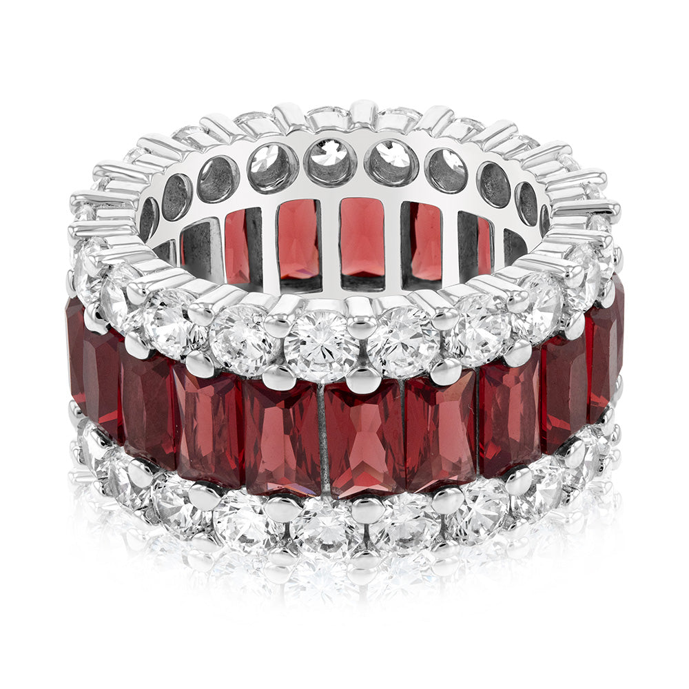 Sterling Silver Rhodium Plated Red Stone And White Cubic Zirconia Ring