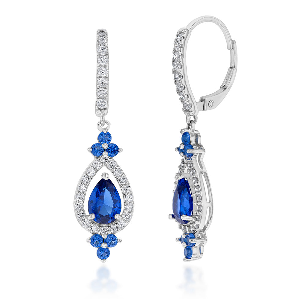 Sterling Silver Rhodium Plated Sapphire Blue & White Cubic Zirconia Drop Earring