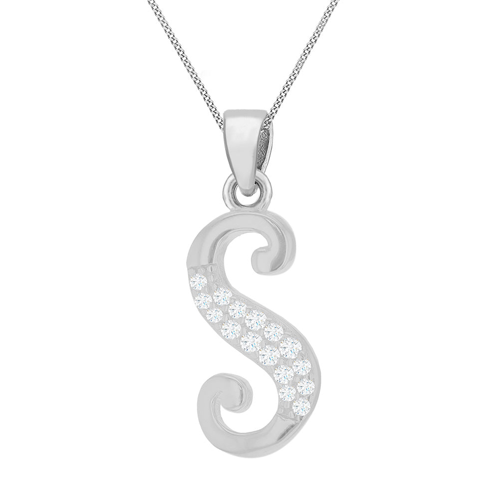 Sterling Silver Rhodium Plated Script "S" Initial Pendant