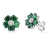 Sterling Silver Rhodium Plated White And Green Cubic Zirconia Flower Stud Earrings