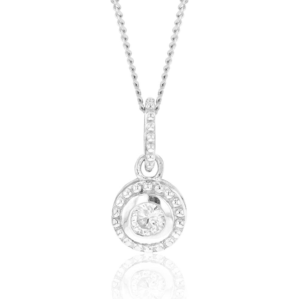 Sterling Silver Rhodium Plated White Cubic Zirconia Halo Pendant